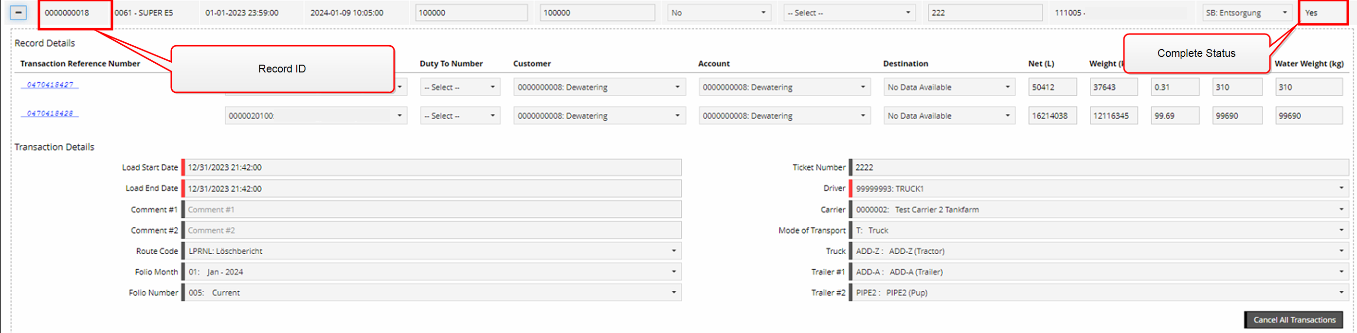 Select 'Cancel All Transactions' to cancel the transactions listed in the Record Details.