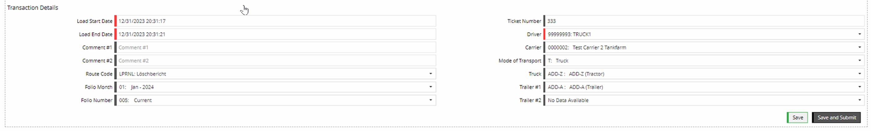 | Ticket Number | If Ticket Numbers are used with transactions in your TMS system, enter a ticket number in this field. |